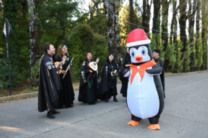 El elenco de la Tuna Novata UACh conformado por 15 integrantes estables -entre estudiantes de pregrado y alumni- estuvo en la bienvenida de los nuevos estudiantes de pregrado y lo hizo con el rótulo de ser la primera tuna de la Universidad Austral de Chile. Respaldo que, como indica Gabriel Kong, director Musical de la Tuna Novata UACh y egresado de Artes Musicales y Sonoras UACh, les permite proyectarse.